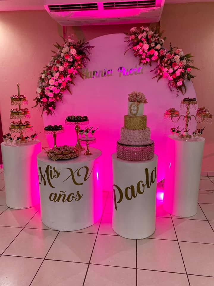 Confección de pasteles personalizados. Elaboración de mesas de postres, candy bar y renta de bases y muebles vintage y todo eso que necesitas para ese día.